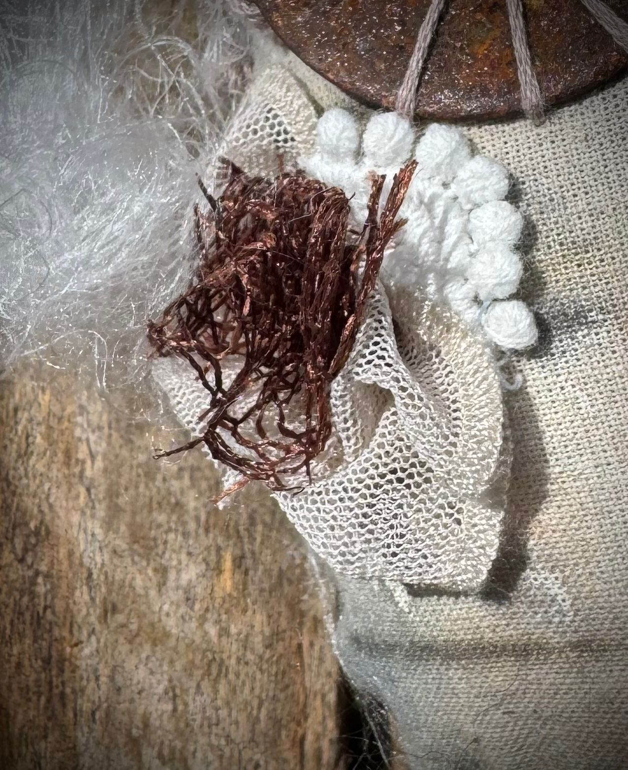 Allwyn is a beautifully handcrafted poppet, designed to promote healing and blessings in relationships—both with oneself and with others. Hand-painted and hand-sewn, Allwyn holds a Howlite crystal for balancing emotions, Lavender for reducing anxiety and easing tension, Holy Thistle for protection, purification, and warding off negativity, and Motherwort to calm and soothe the nervous system.