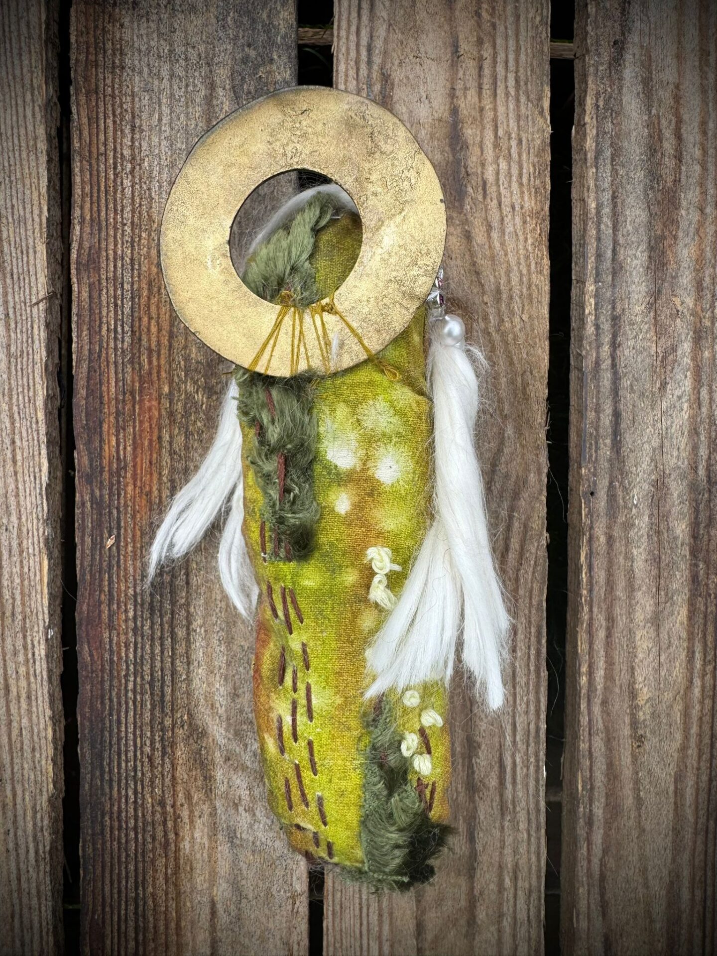 Enid the Life Soul is a handcrafted poppet designed to promote self-love, confidence, and personal growth. Hand-painted and hand-sewn, Enid holds the powerful energy of a Green Dot Jasper crystal for freedom and strength, Meadowsweet for peace and happiness, Vervain for love and protection, and Holy Thistle for blessings, energy, and connection to the Earth.
