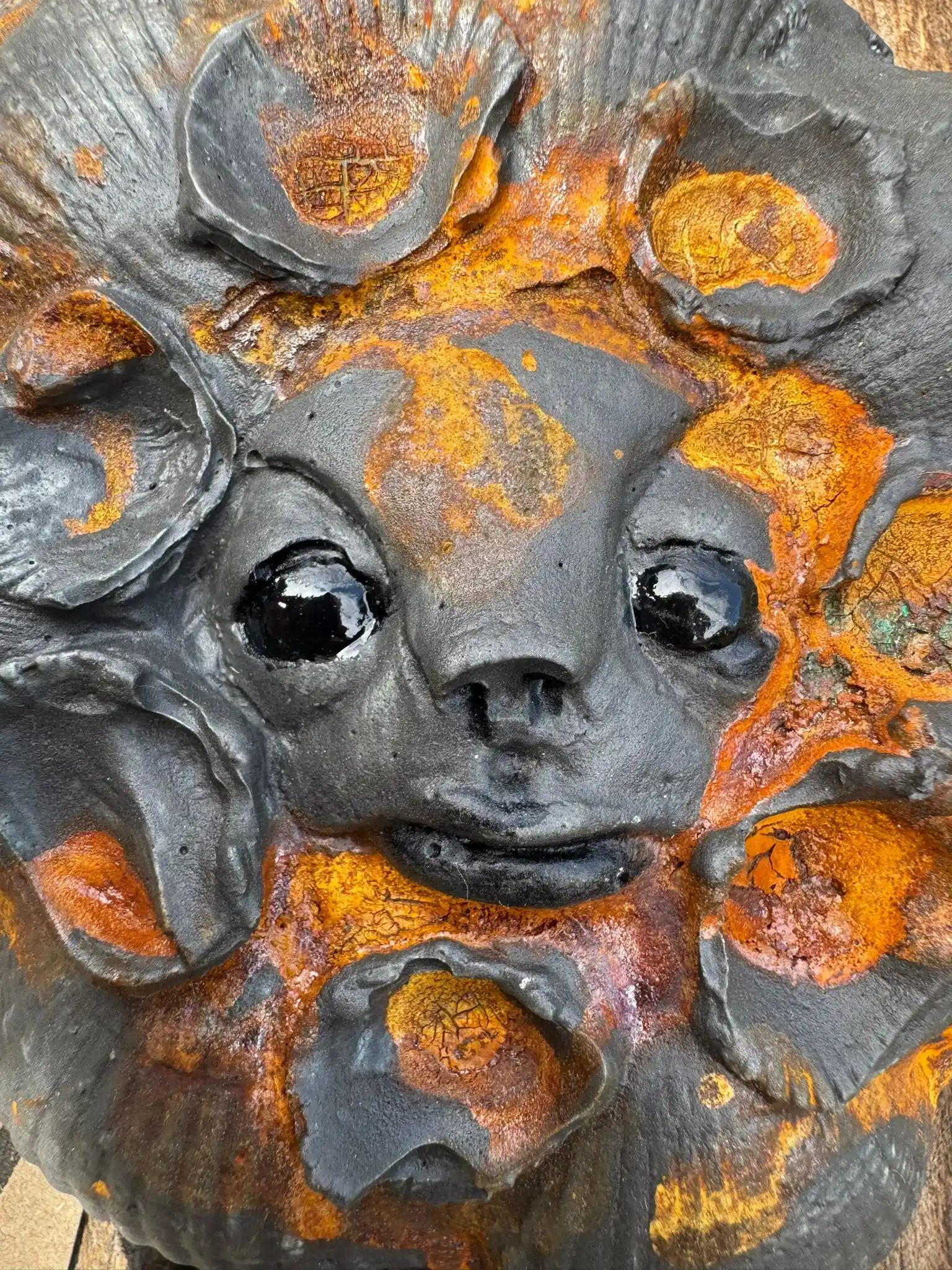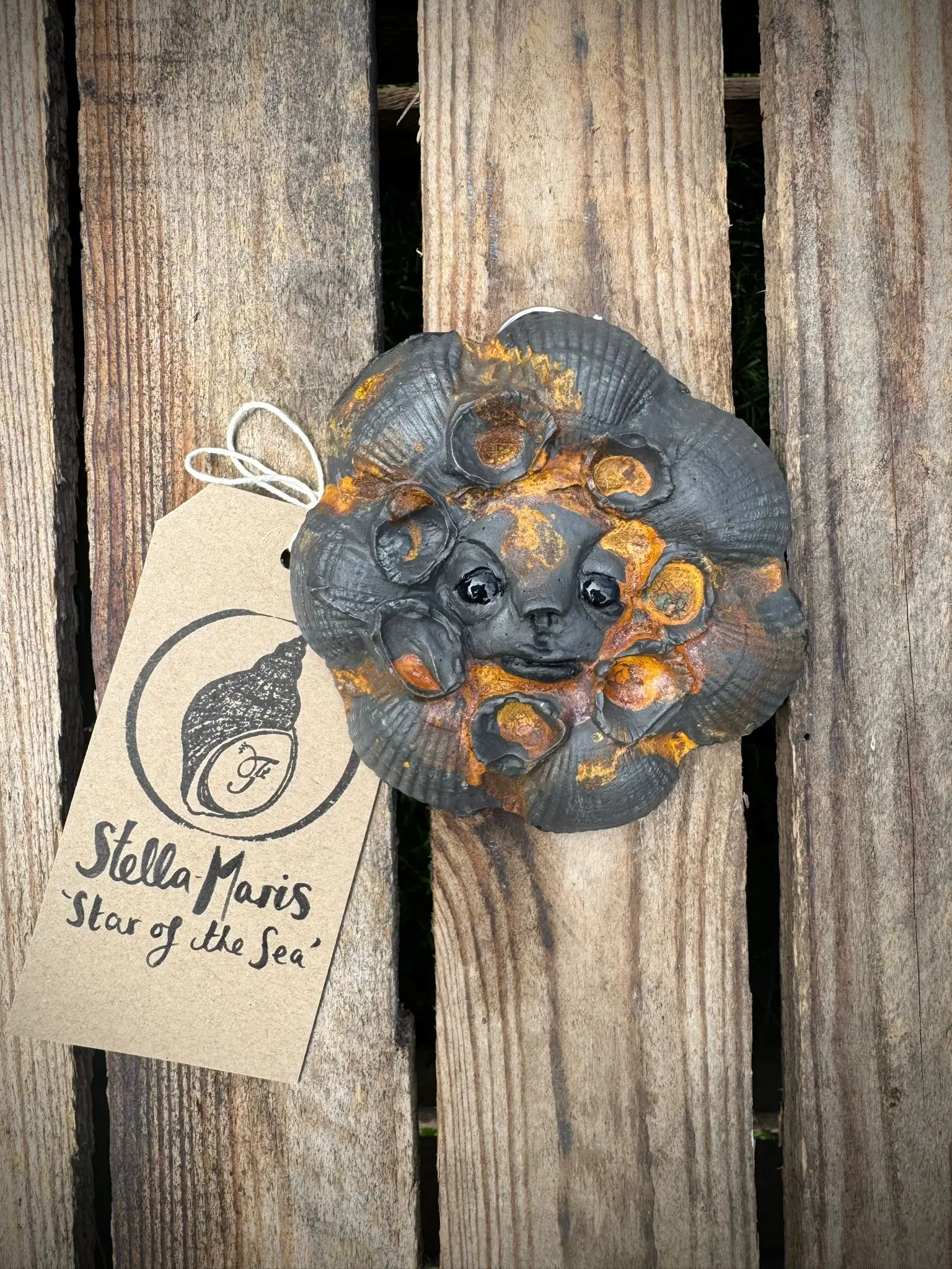 A small, limited-edition artwork inspired by the mystical beauty of the sea. Handcrafted from Cassini outdoor plaster, this unique piece features a striking face framed by swirling shells.